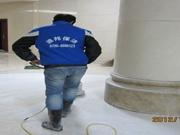 迪邦公司保潔員正在為“渝水區(qū)法院”做地面石材翻新