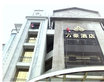 迪邦保潔公司人員正在為“恒大城”做招牌清洗。